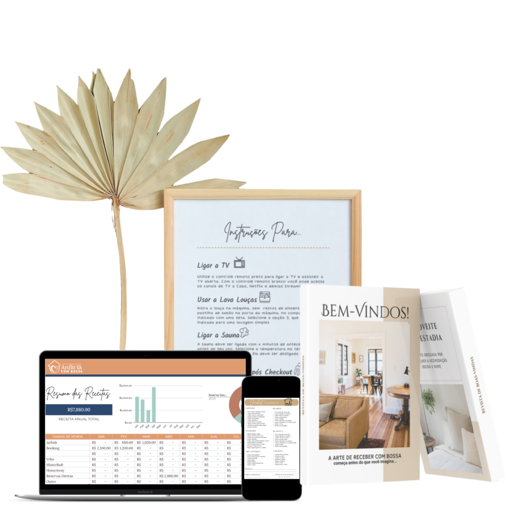 Reuni toda minha experiência, atualizada com os estudos mais recentes das tendências do setor, para produzir um pack de ferramentas completo e atual, que irá transformar a vida das anfitriãs e impressionar seus hóspedes!